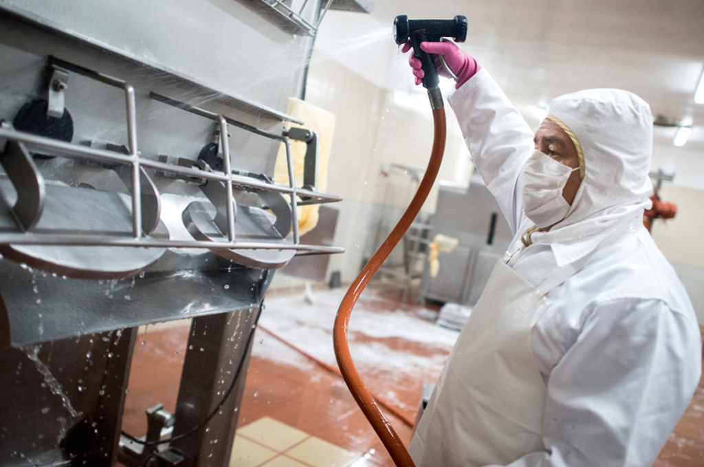 • die tägliche Reinigung und Desinfektion der Produktionsräume mit